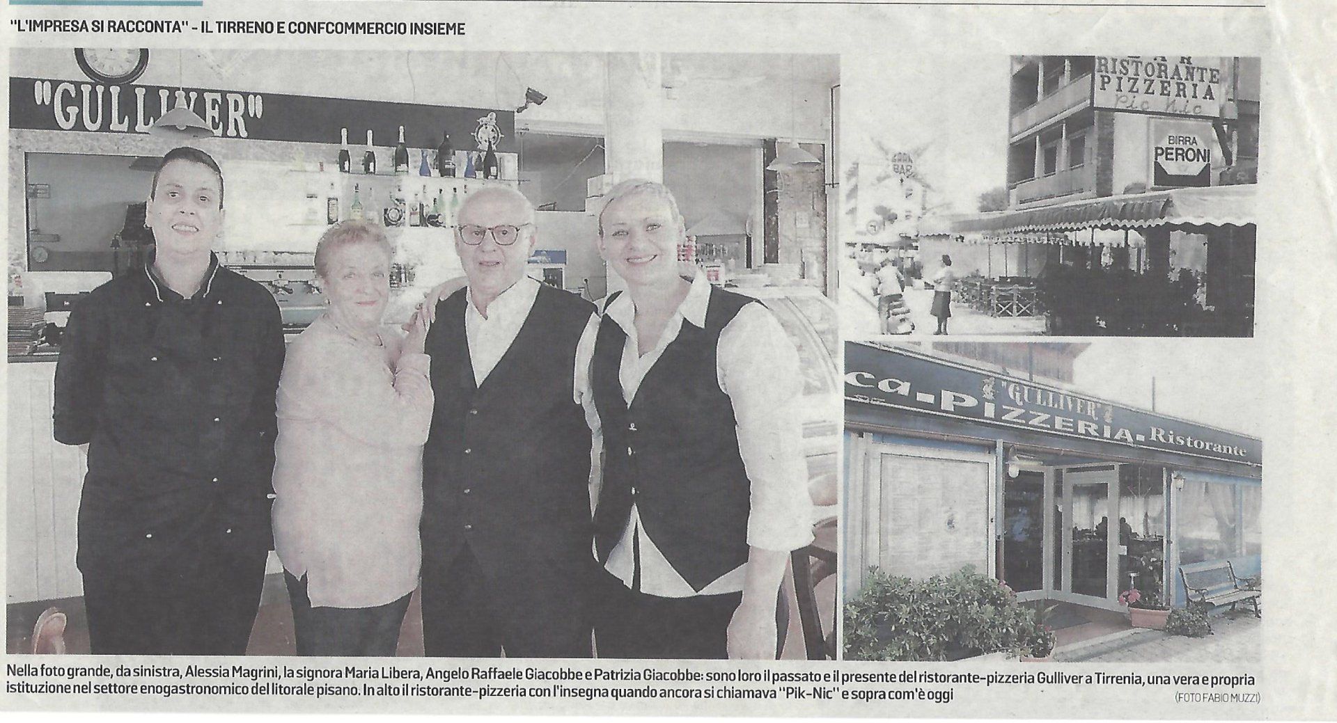 molti ci sono stati e sanno che quando si parla di buon cibo si sta sicuramente parlando del ristorante Gulliver, nel cuore di Tirrenia appunto qui dal 1975 Angelo Raffaele Maria libera Giacobbe mettono al primo posto il cliente oggi sono Patrizia Giacobbe la cognata Alessia Magnini a impegnarsi anima e corpo nel ristorante simbolo della buona tavola sul lungomare tirreniese. “Quello che purtroppo non aiuta la costa pisana e la stagionalità, spiega Patrizia, ma i nostri clienti vengono tutto l'anno punto sia in estate,
